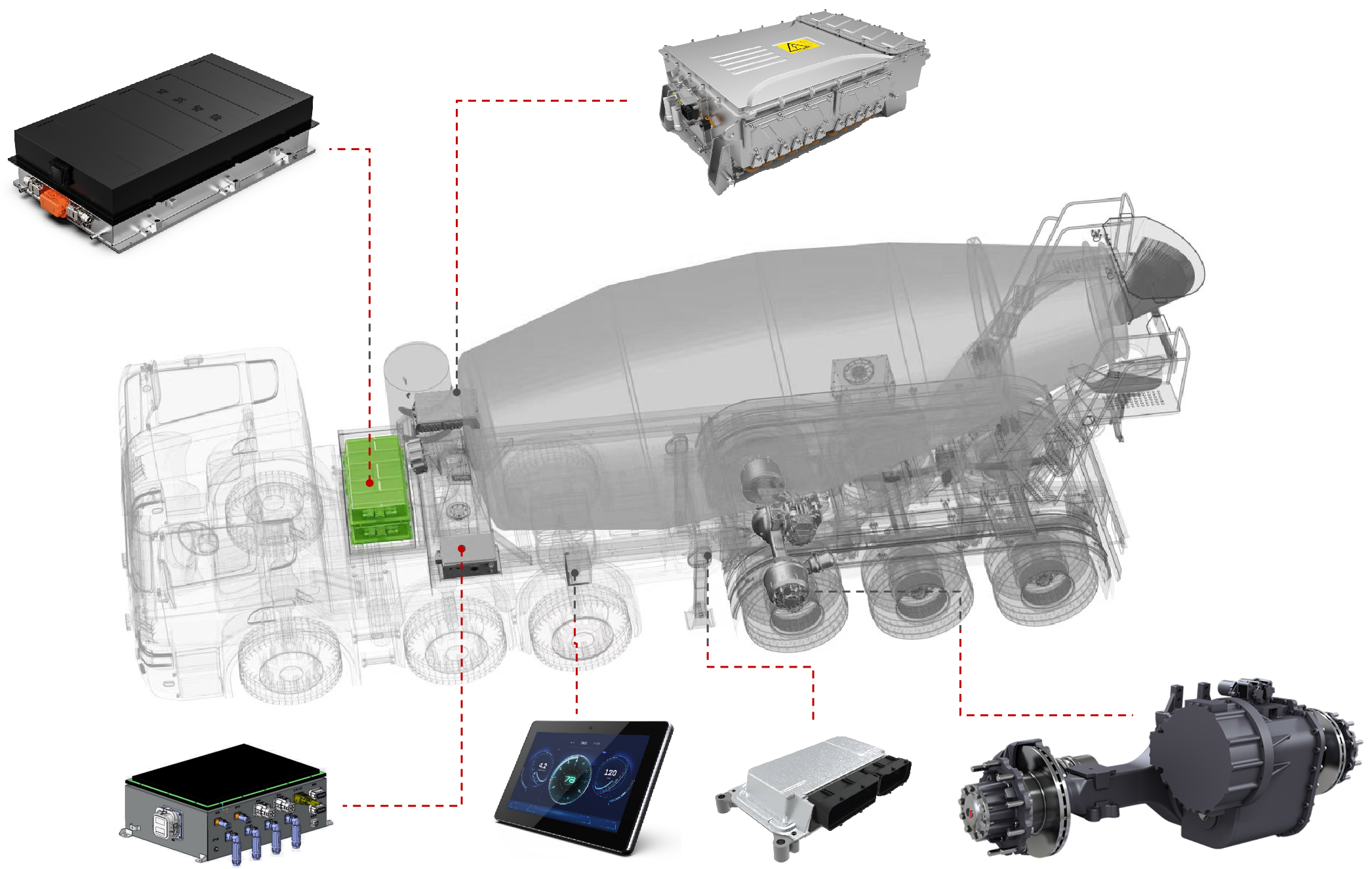 联合研发的混合动力牵引搅拌半挂车,以其开创性的头挂一体智能驱动技术,开辟了绿色高效商砼运输的新天地。它集成了先进的混合动力技术,实现了混凝土搅拌运输车产品高效能、低排放、轻量化、智能化的目标,引领混凝土行业对高品质搅拌运输车的需求。